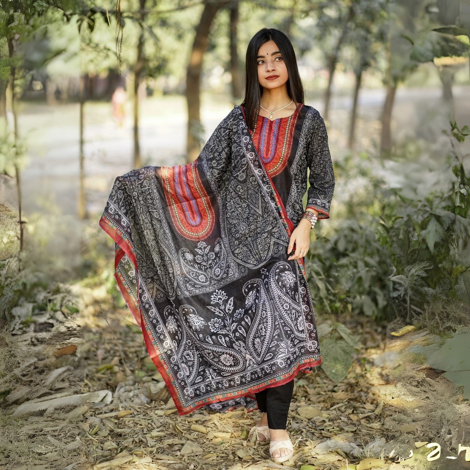 ১০০% কটন সুতি কাপড় ডিজিটাল প্রিন্টের আনস্টিজ থ্রিপিস কালেকশন যেকোনো অনুষ্ঠান/অফিস এবং বাসায় ব্যবহারের জন্যে পারফেক্ট ড্রেস.