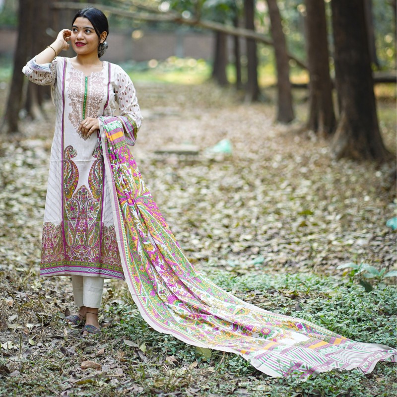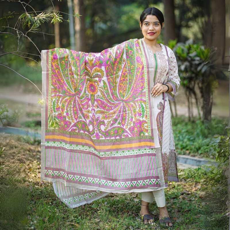১০০% কটন সুতি কাপড় ডিজিটাল প্রিন্টের আনস্টিজ থ্রিপিস কালেকশন যেকোনো অনুষ্ঠান/অফিস এবং বাসায় ব্যবহারের জন্যে পারফেক্ট ড্রেস.