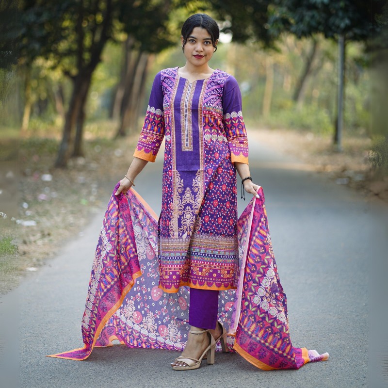 ১০০% কটন সুতি কাপড় ডিজিটাল প্রিন্টের আনস্টিজ থ্রিপিস কালেকশন যেকোনো অনুষ্ঠান/অফিস এবং বাসায় ব্যবহারের জন্যে পারফেক্ট ড্রেস.