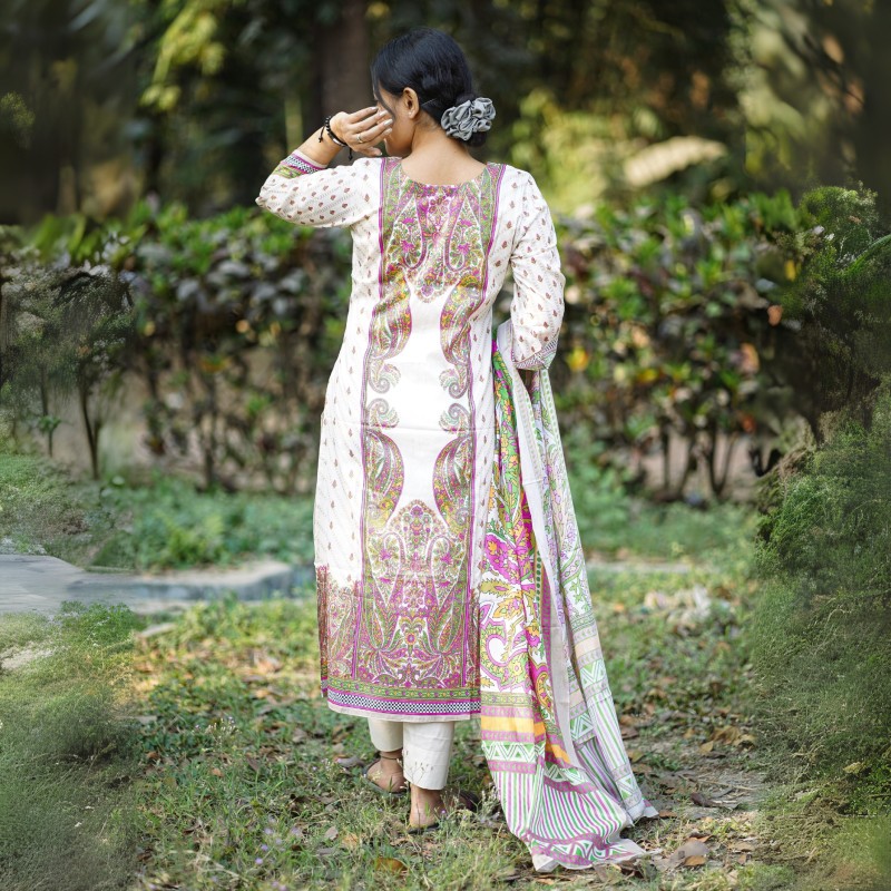 ১০০% কটন সুতি কাপড় ডিজিটাল প্রিন্টের আনস্টিজ থ্রিপিস কালেকশন যেকোনো অনুষ্ঠান/অফিস এবং বাসায় ব্যবহারের জন্যে পারফেক্ট ড্রেস.